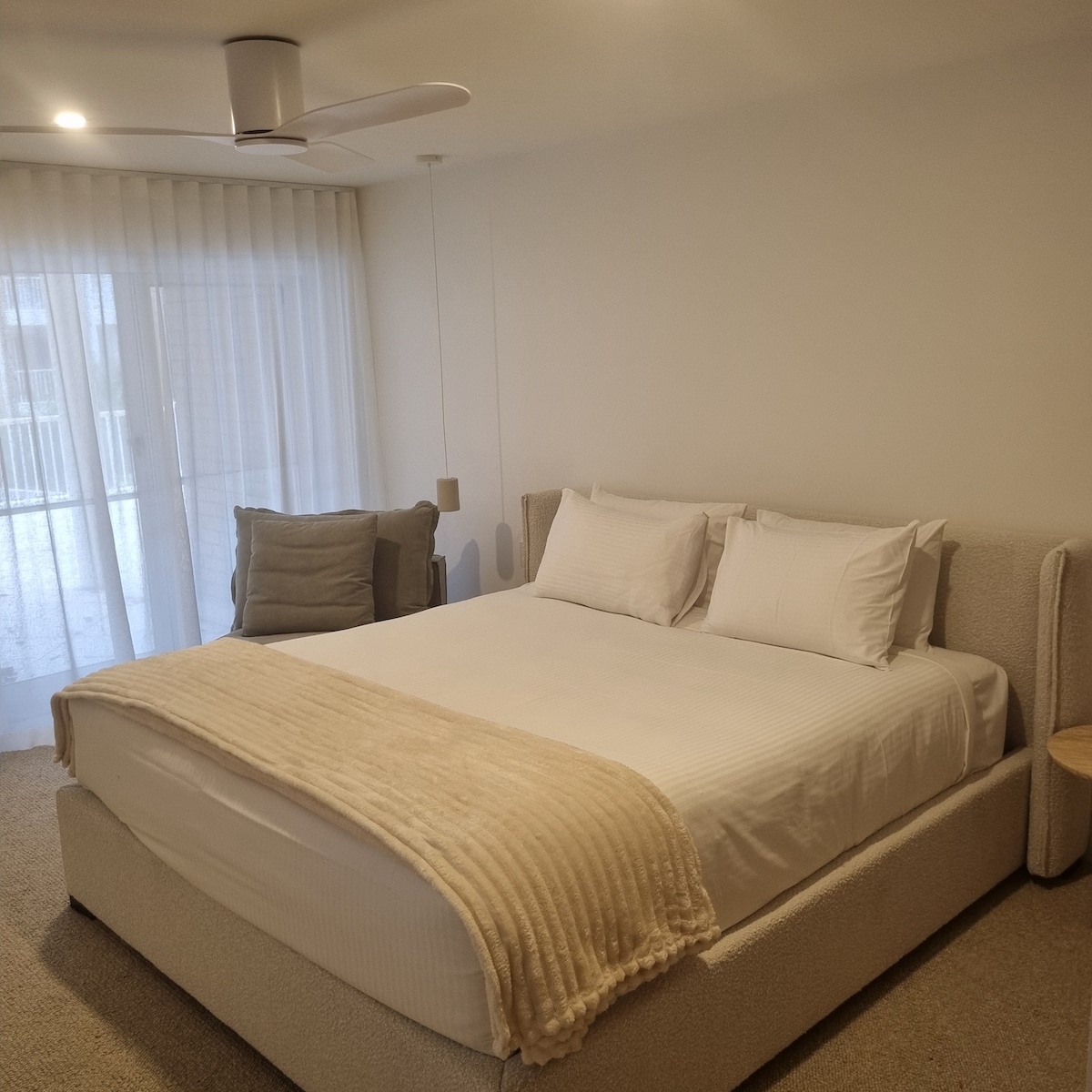 Fully renovated our stylish Luxury 2 Bedroom Apartment offers bright and spacious living spaces with separate lounge and dining areas. Featuring a Queen bed in the Master Bedroom with it’s own TV and ensuite bathroom. The 2nd Bedroom features 2 single beds – perfect for a family holiday. The modern and fully equipped kitchen complete with dishwasher, oven, cooktop and microwave is perfect for self-catering and you’ll also have the convenience of a private laundry with washing machine, clothes dryer, iron and ironing board. Enjoy free WiFi and a flatscreen TV. Unwind on your furnished balcony with pool & garden views and the ocean in the distance. Enjoy the serenity.